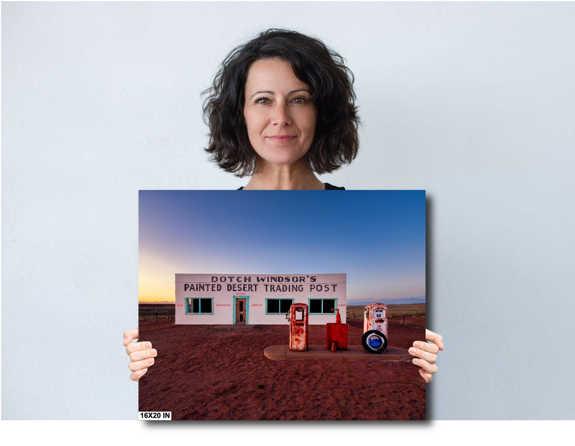 Arizona Desert Landscape Print - Route 66 Painted Desert Trading Post Wall Art Print Canvas or Paper, Southwestern Decor for Home or Office