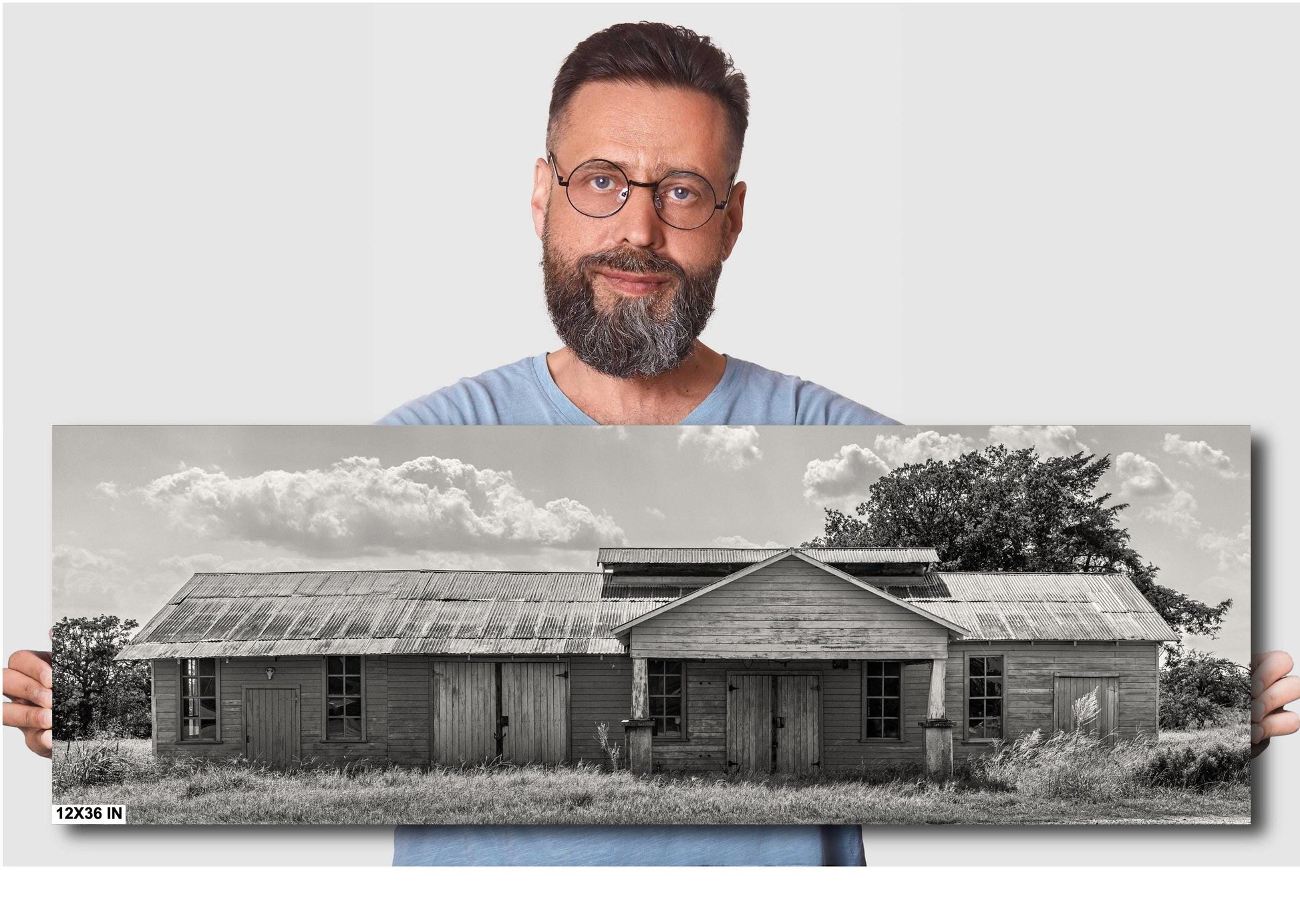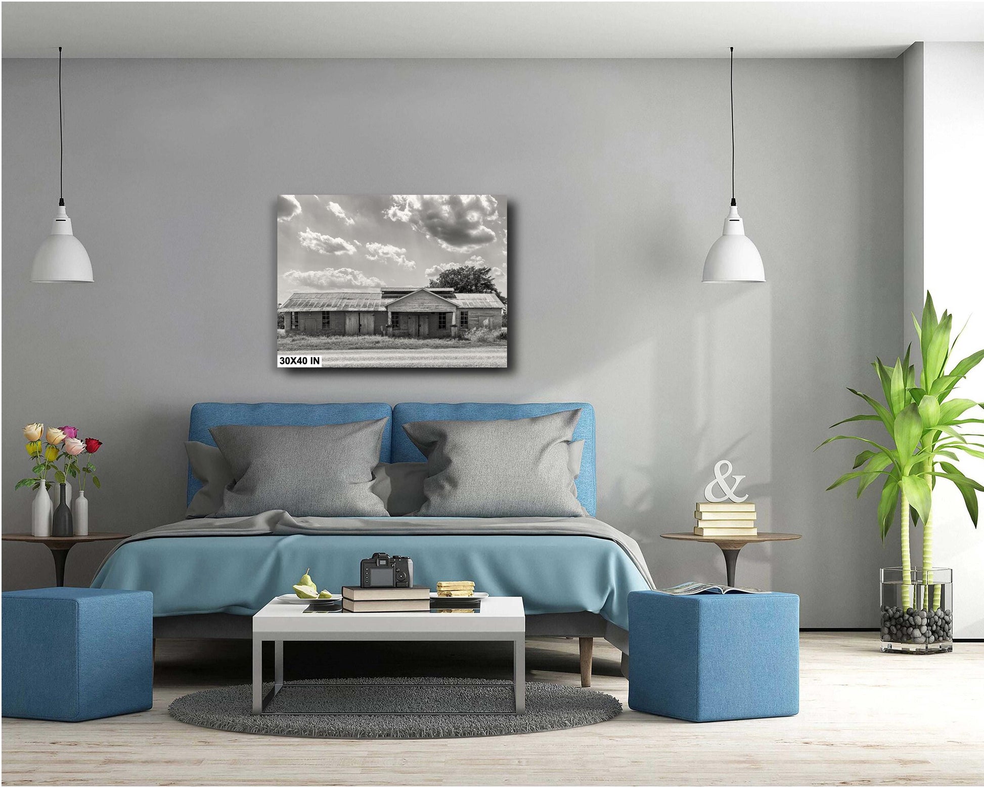 Barn Wall Art - Rustic Neutral Farmhouse Wall Art: Modern White Barn Landscape Print for Home, Canvas Decor, Rustic Chic Decor