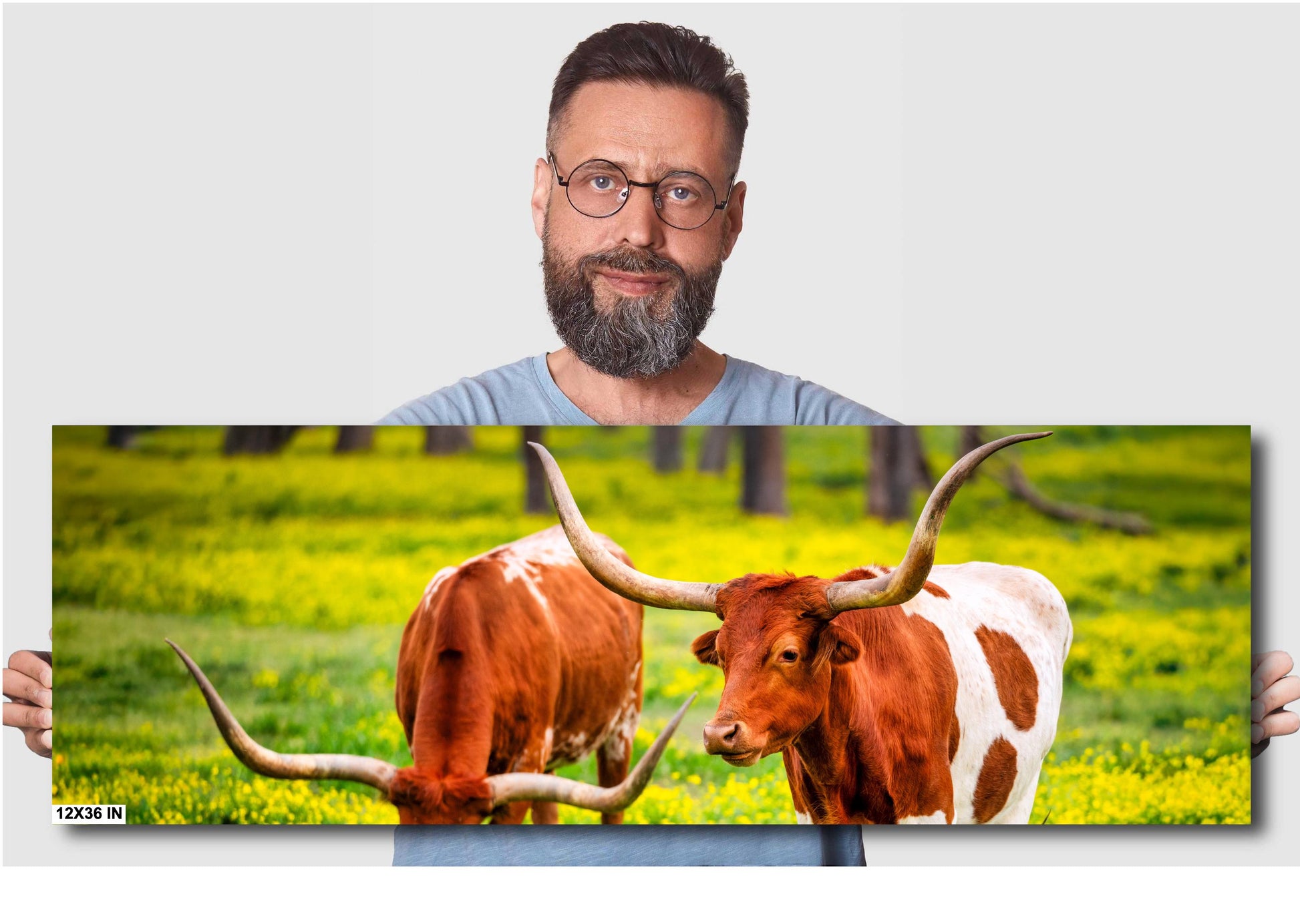Cattle Wall Canvas - Rustic Longhorn Cow Photography | Ranch Wall Art for Modern Farmhouse Decor | Canvas, Paper, Acrylic or Metal Print