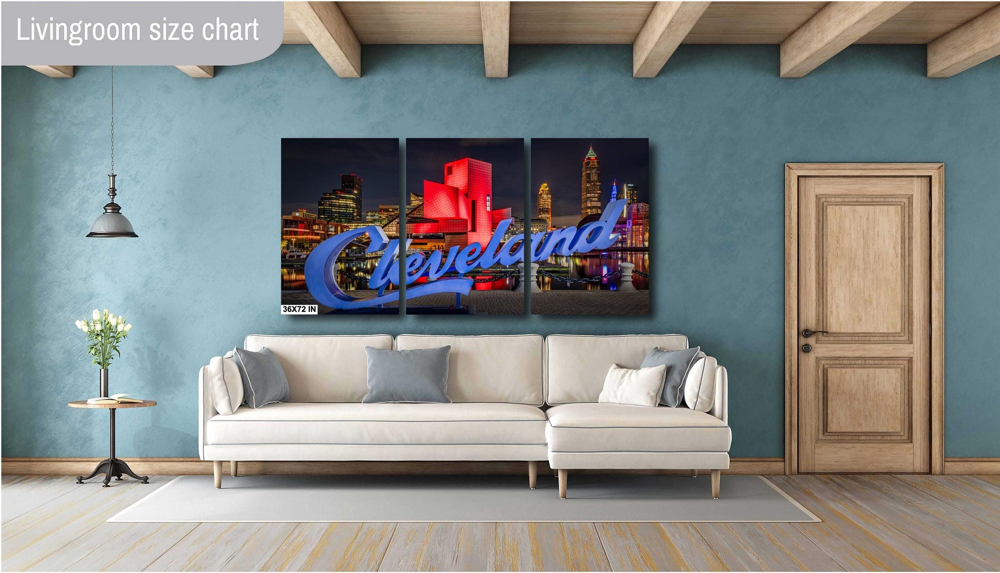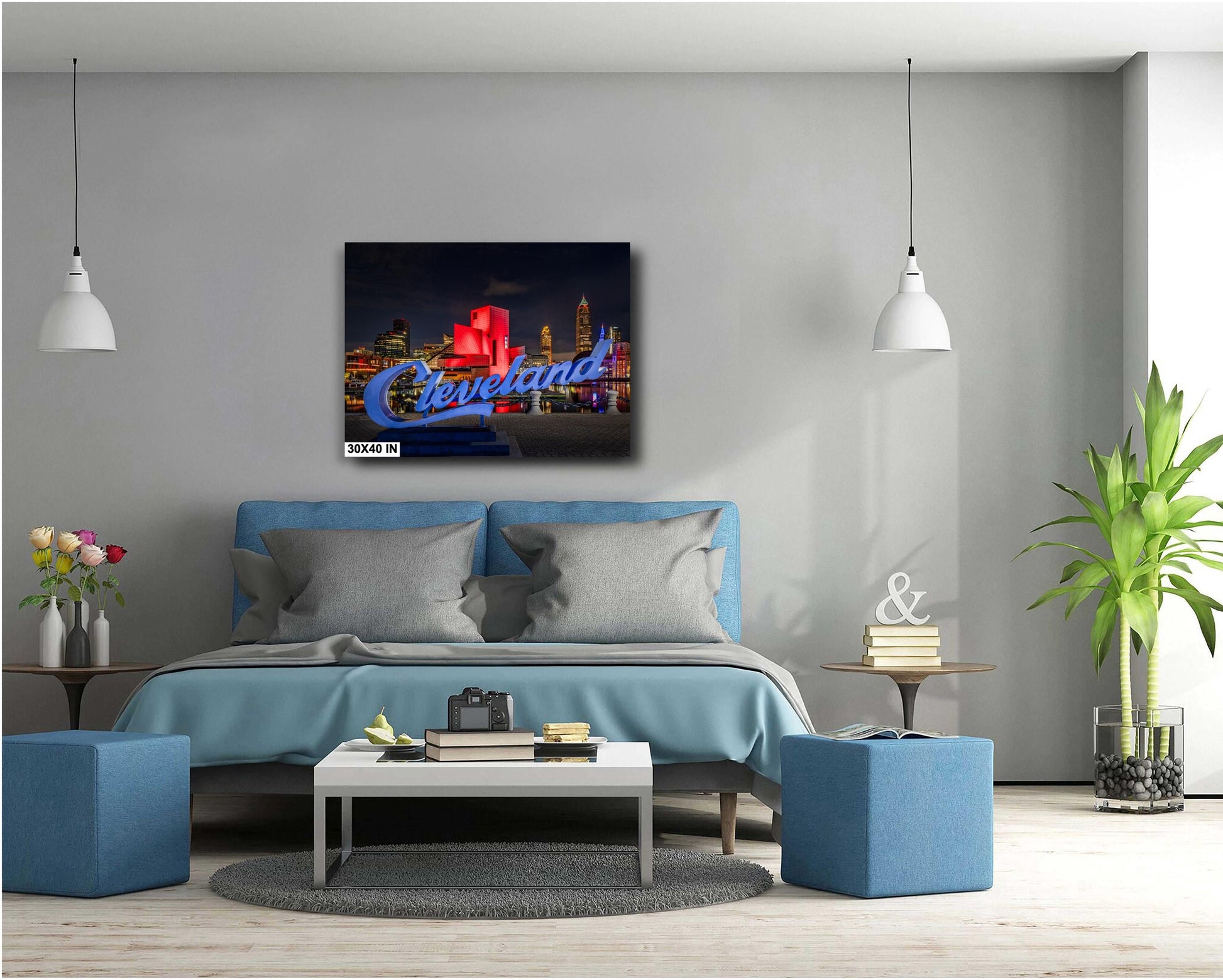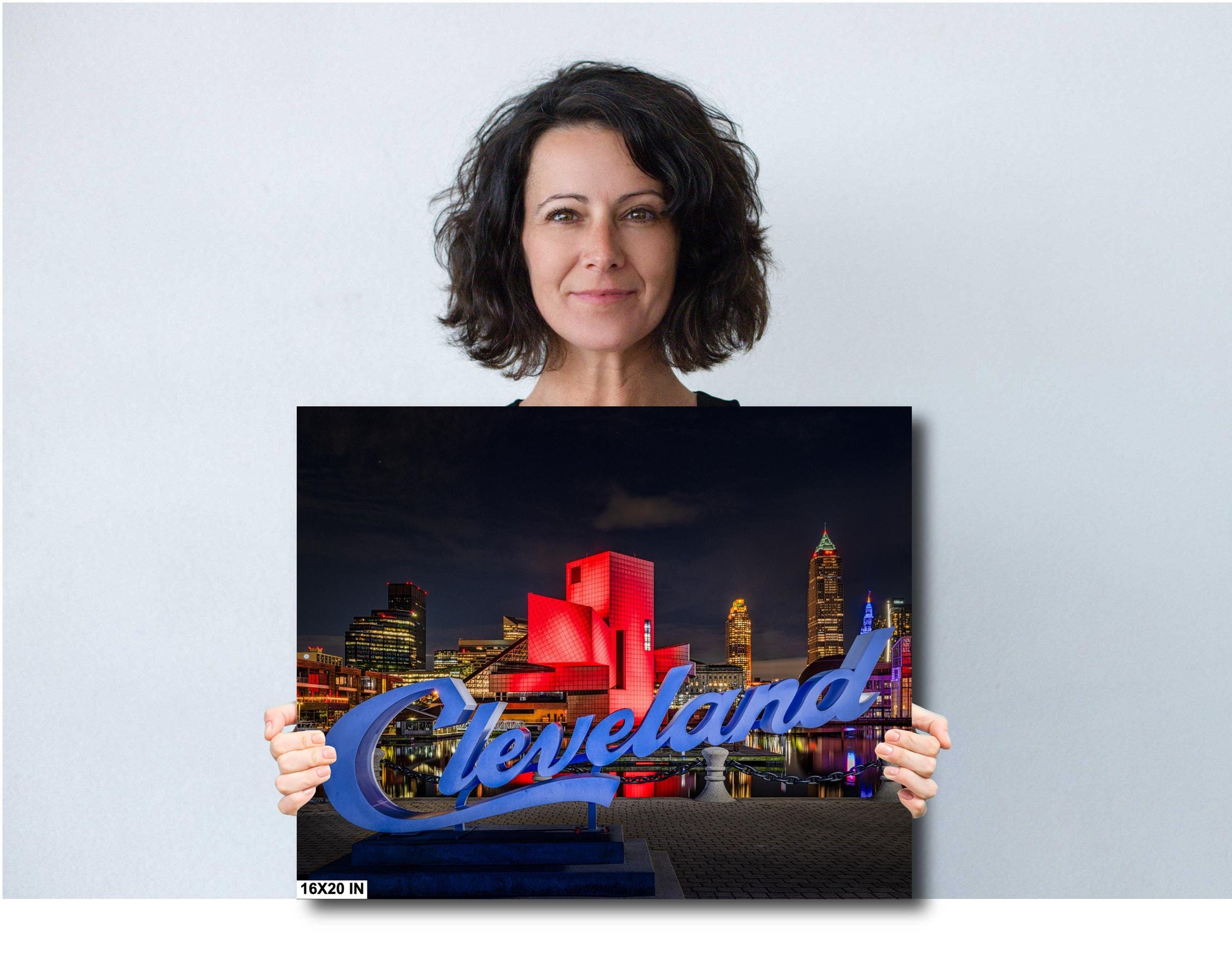 Cleveland Skyline at Night Art | Script Sign & Rock Hall Canvas, Metal Print | Downtown Ohio Cityscape Decor
