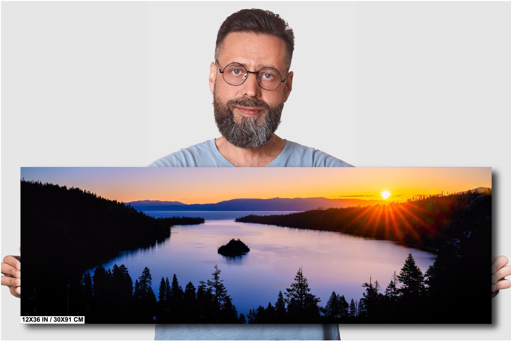 Emerald Bay Lake Tahoe Print - Real Photography Sunrise Over Fanette Island on Premium Photo Paper, Canvas, Acrylic or Metal Nature Print
