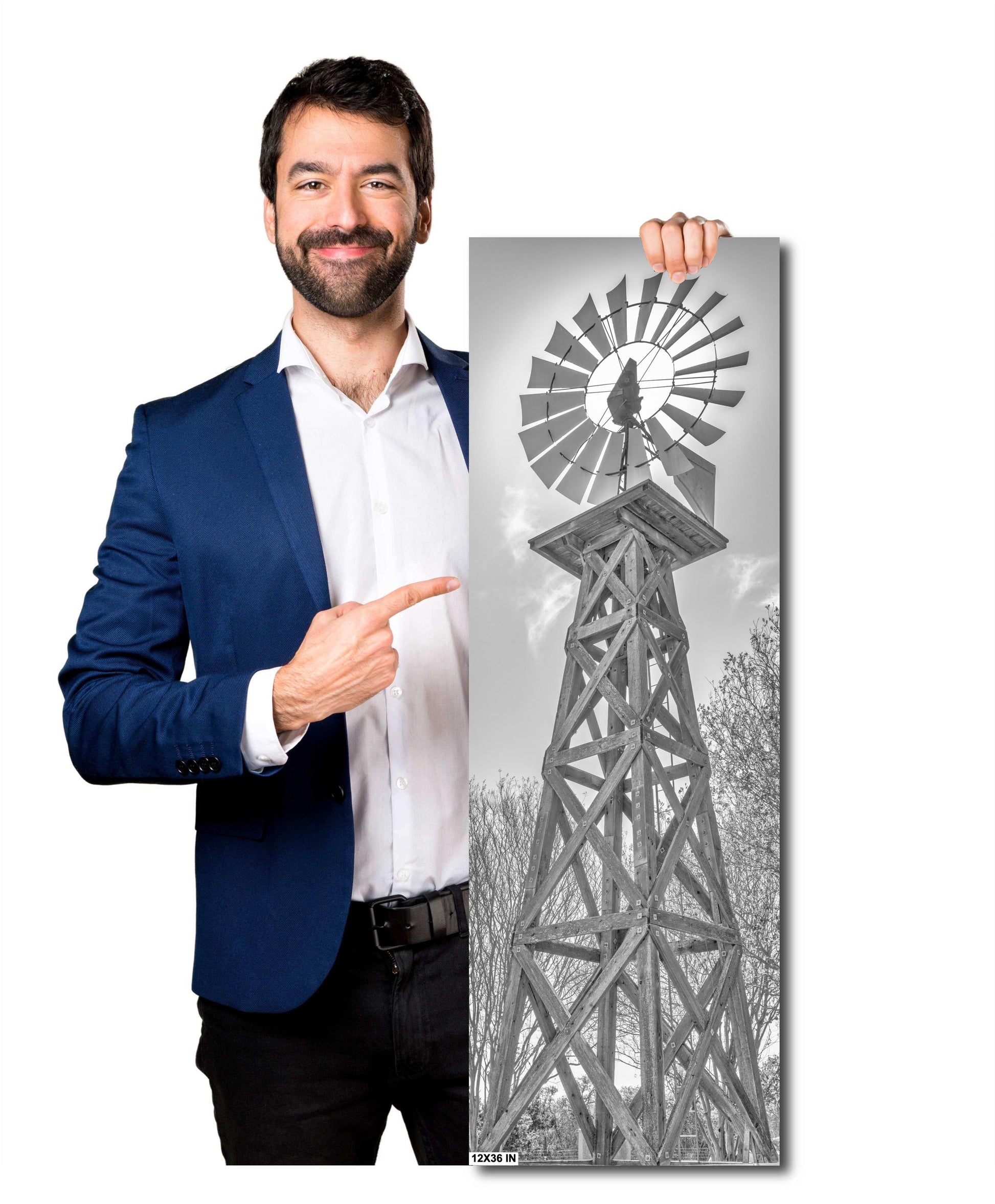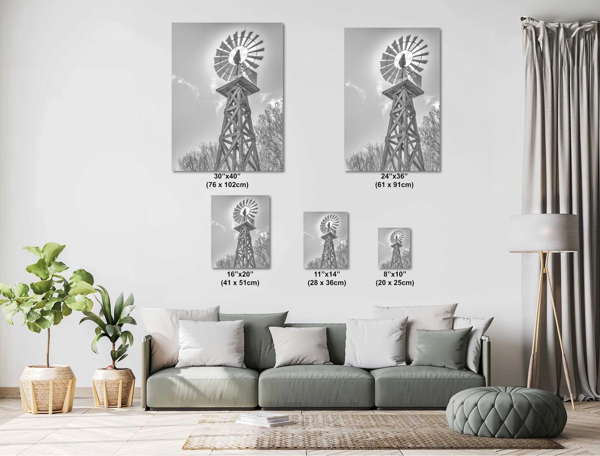 Farmhouse Wall Decor - Texas Windmill Black & White Print: Rustic Art, Country Landscape Decor on Photo Paper, Canvas, Acrylic or Metal