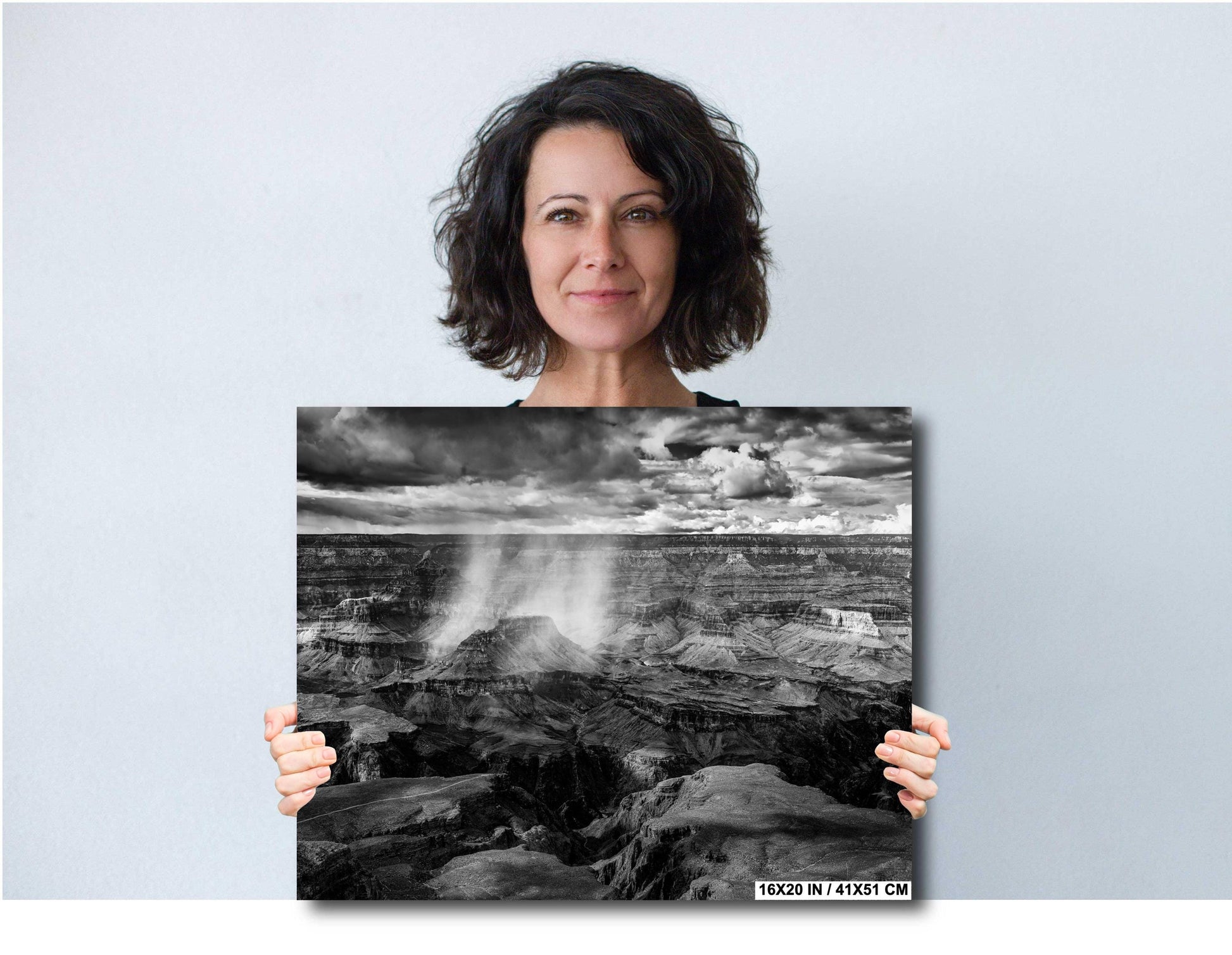 Grand Canyon Art - Black and White Mather Point Rain Photo, Arizona Wall Decor on Paper, Canvas, Acrylic & Metal