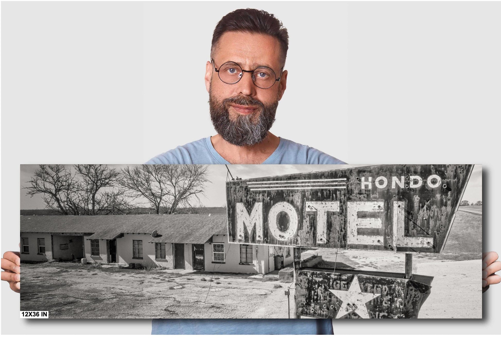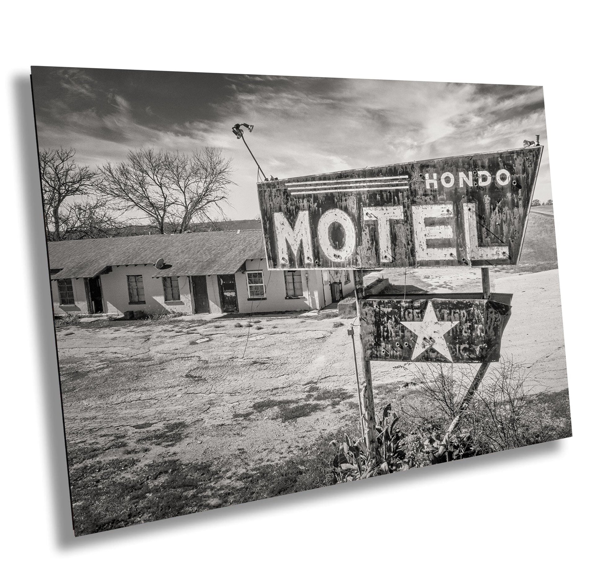 Hondo Motel Neon Sign Art - Black & White Photography for Texas Roadside Wall Decor, Retro Home Decor