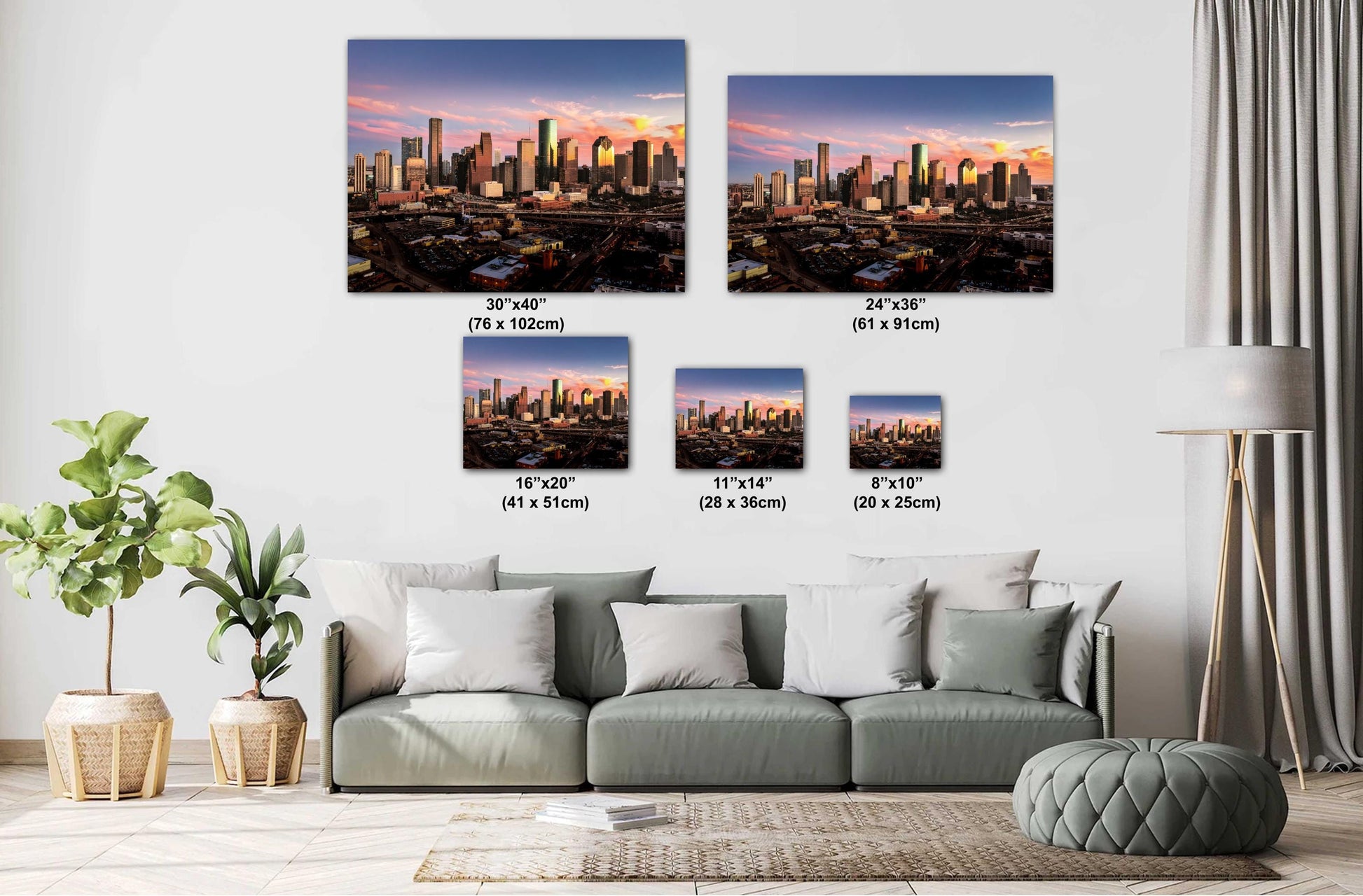 Houston Wall Art - Houston Skyline Sunset Panoramic Photo | Downtown Cityscape Print on Premium Photo Paper, Canvas, Acrylic & Metal