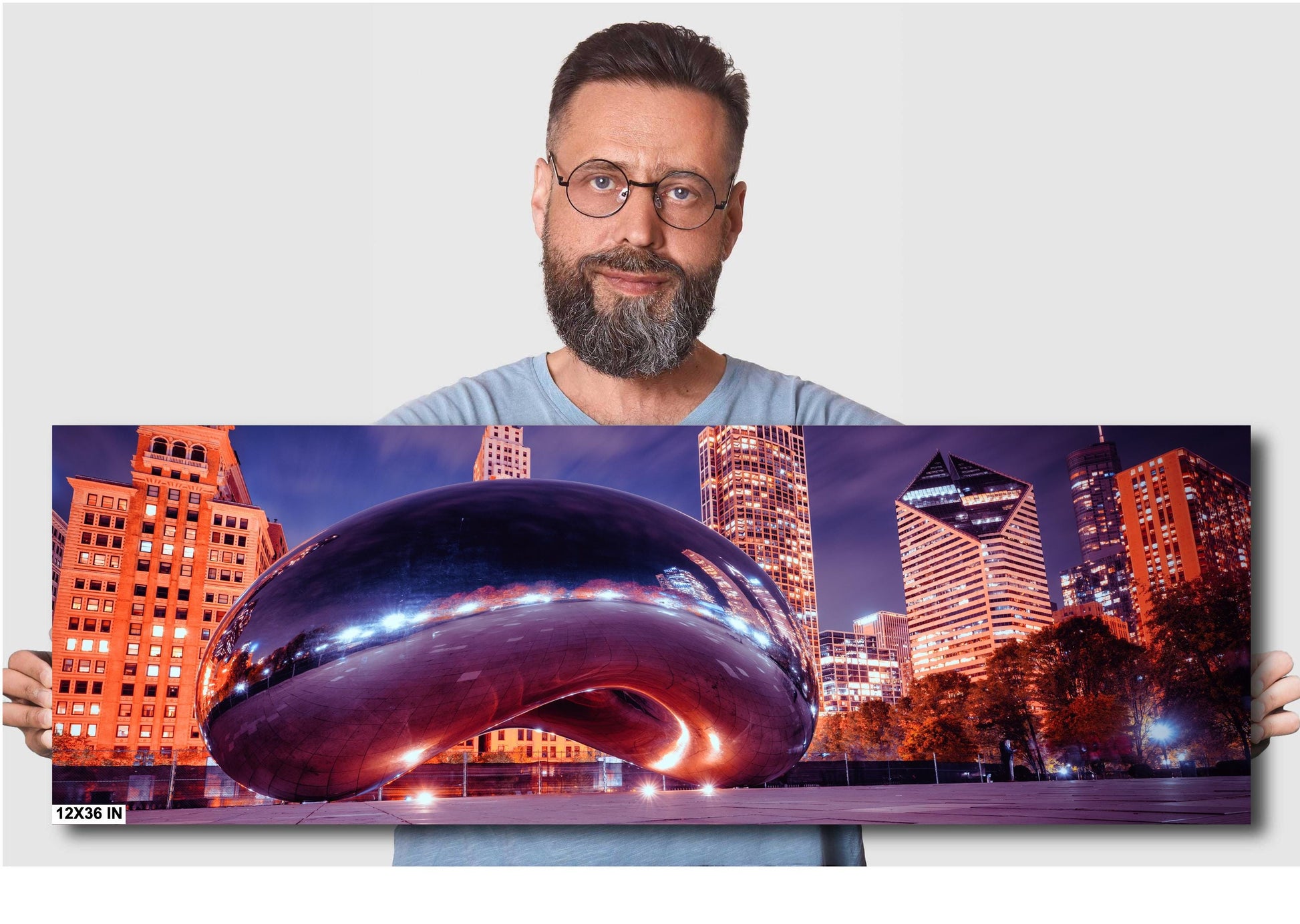 This fine art print features a stunning nighttime view of Chicago’s iconic Cloud Gate sculpture, better known as "The Bean." Located in Millennium Park, this highly reflective public art piece was designed by artist Anish Kapoor and installed in 2006. The stainless steel surface captures and distorts the surrounding skyline, making it a popular attraction for tourists and locals alike. The striking architecture of Chicago's skyline in the background adds depth and context to this already mesmerizing landmark, capturing the spirit of the city.