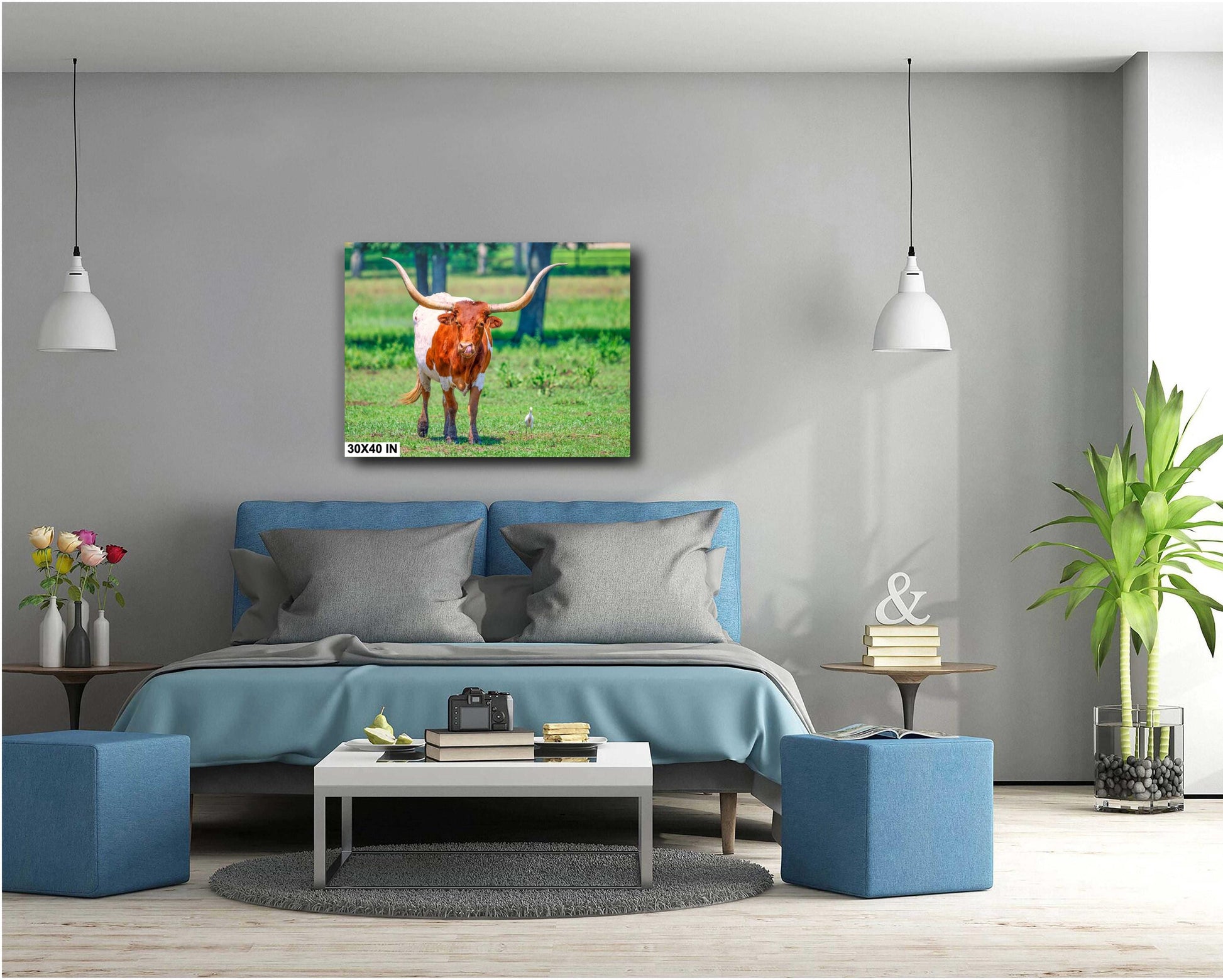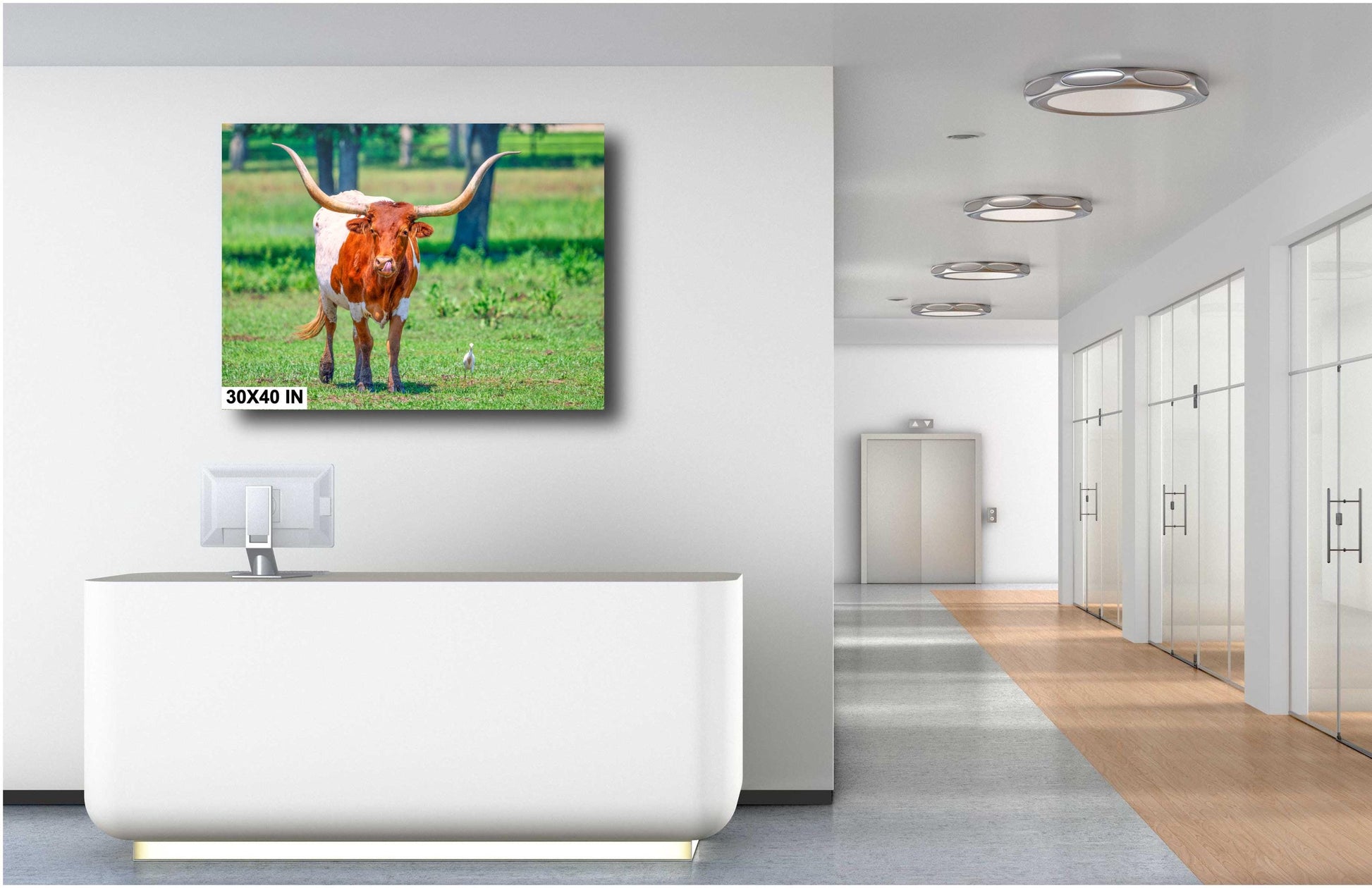 Longhorn Steer Springtime Photograph | Texas Photography Art Print | High Quality Canvas, Acrylic & Metal Options