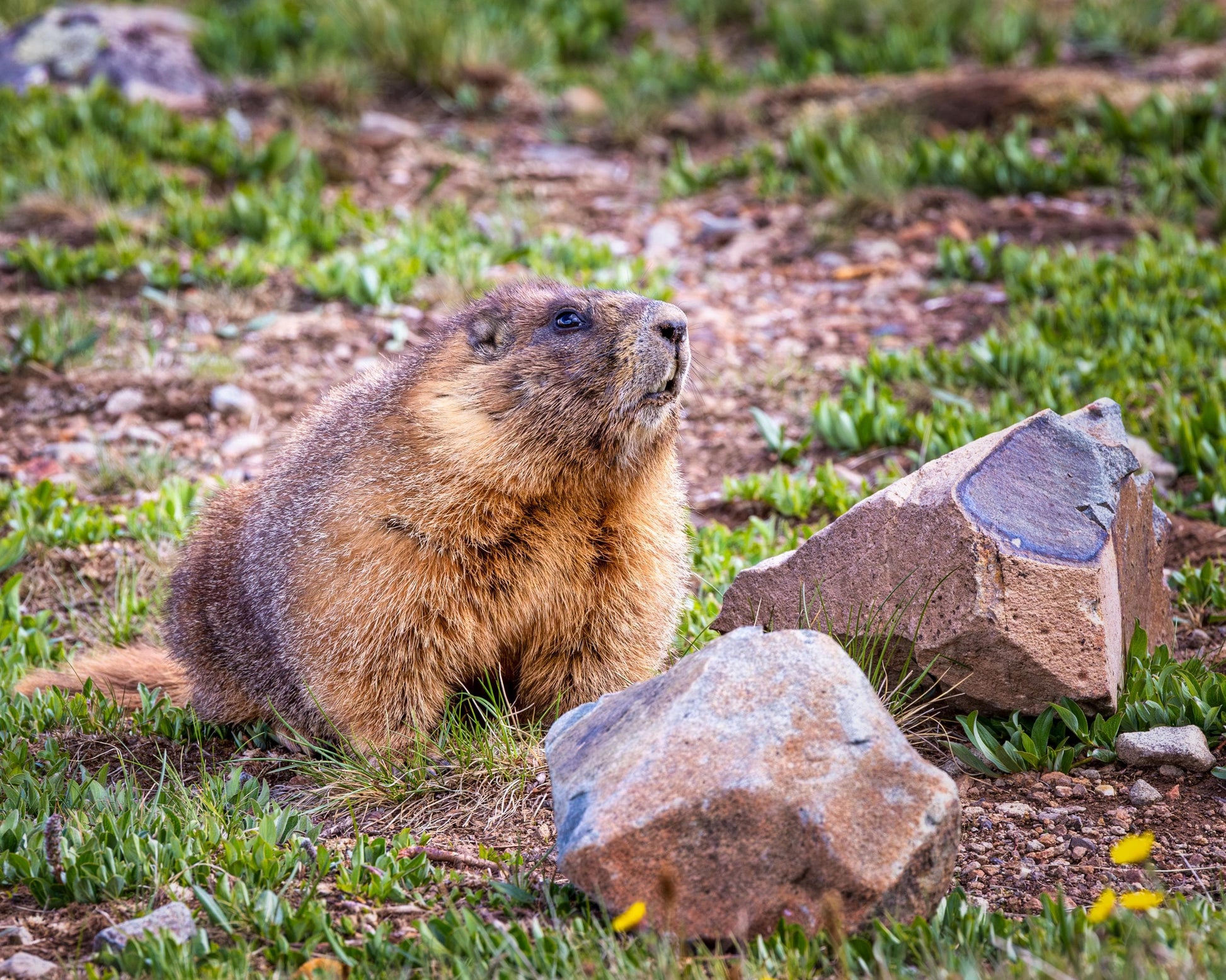 Marmots, I knew, were notoriously skittish. They tend to keep their distance from hikers and Jeep enthusiasts rumbling along the trails. So, as I knelt down, I expected him to dart into a burrow at any second. To make matters worse, I had the wrong lens on my camera. I'd been shooting mountain landscapes with a wide-angle lens. I needed to switch to my telephoto lens if I was going to get a close-up of this little guy. But I also knew from experience that any sudden movement could send him scurrying.