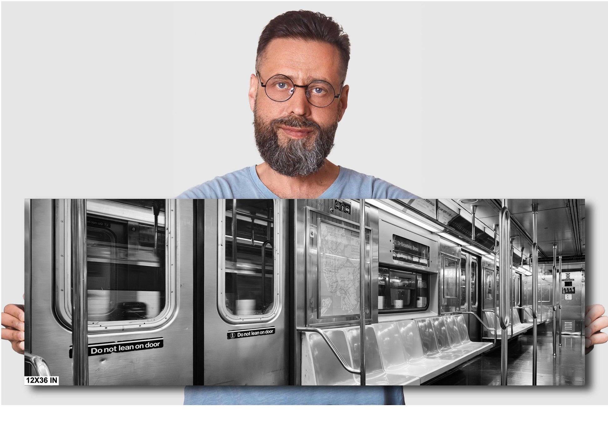 NYC Subway Car Interior Print - Black & White Urban Transit Wall Art, MTA Poster or Canvas for Home Decor