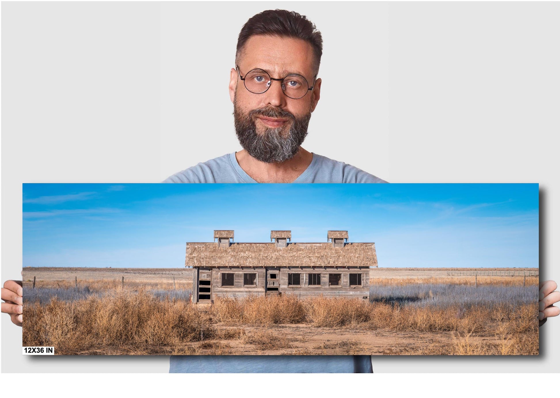 Rustic Wall Decor - Abandoned Texas Homestead Print: Farmhouse & Chicken Coop Landscape, Art on Canvas or Premium Photo Paper