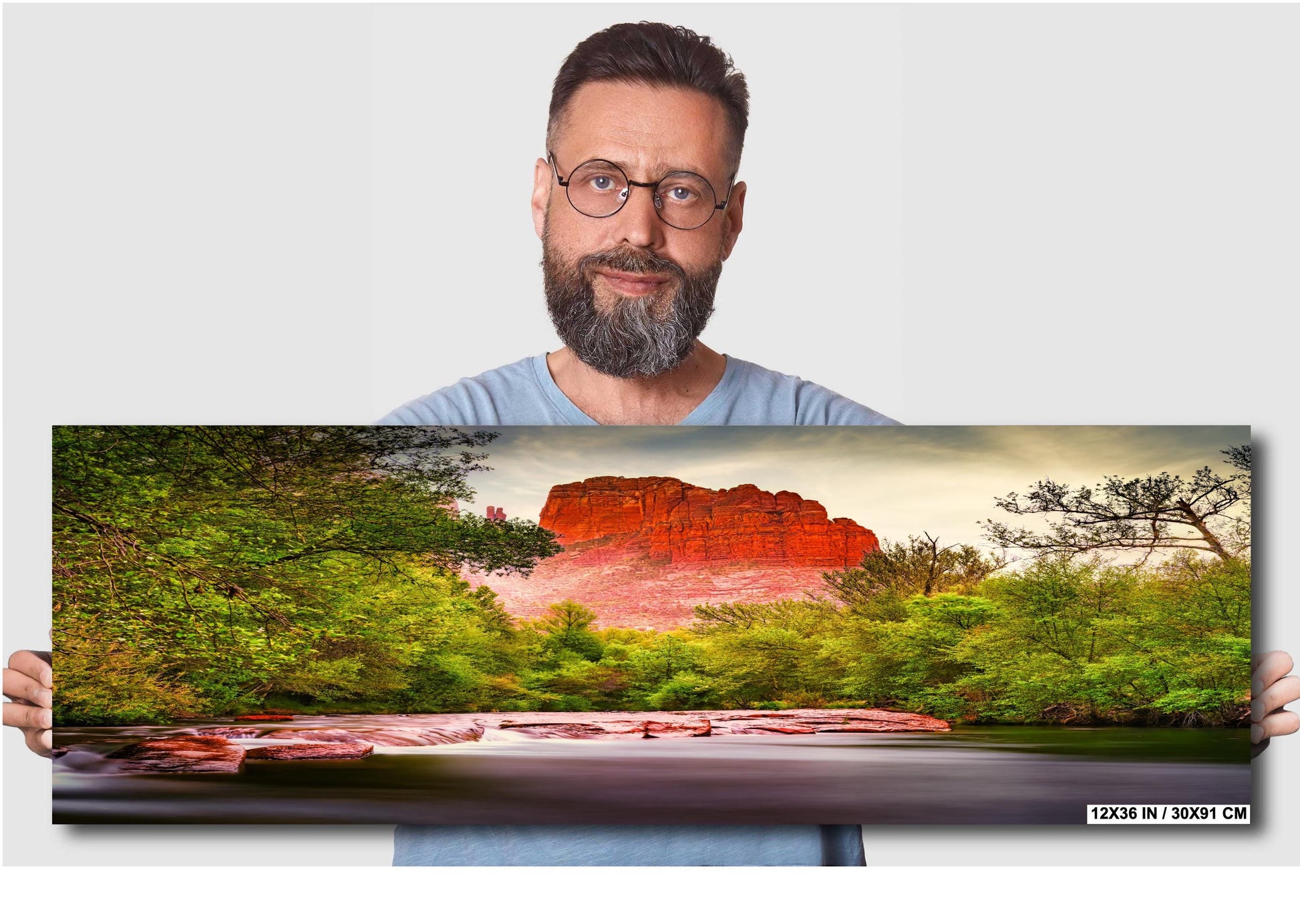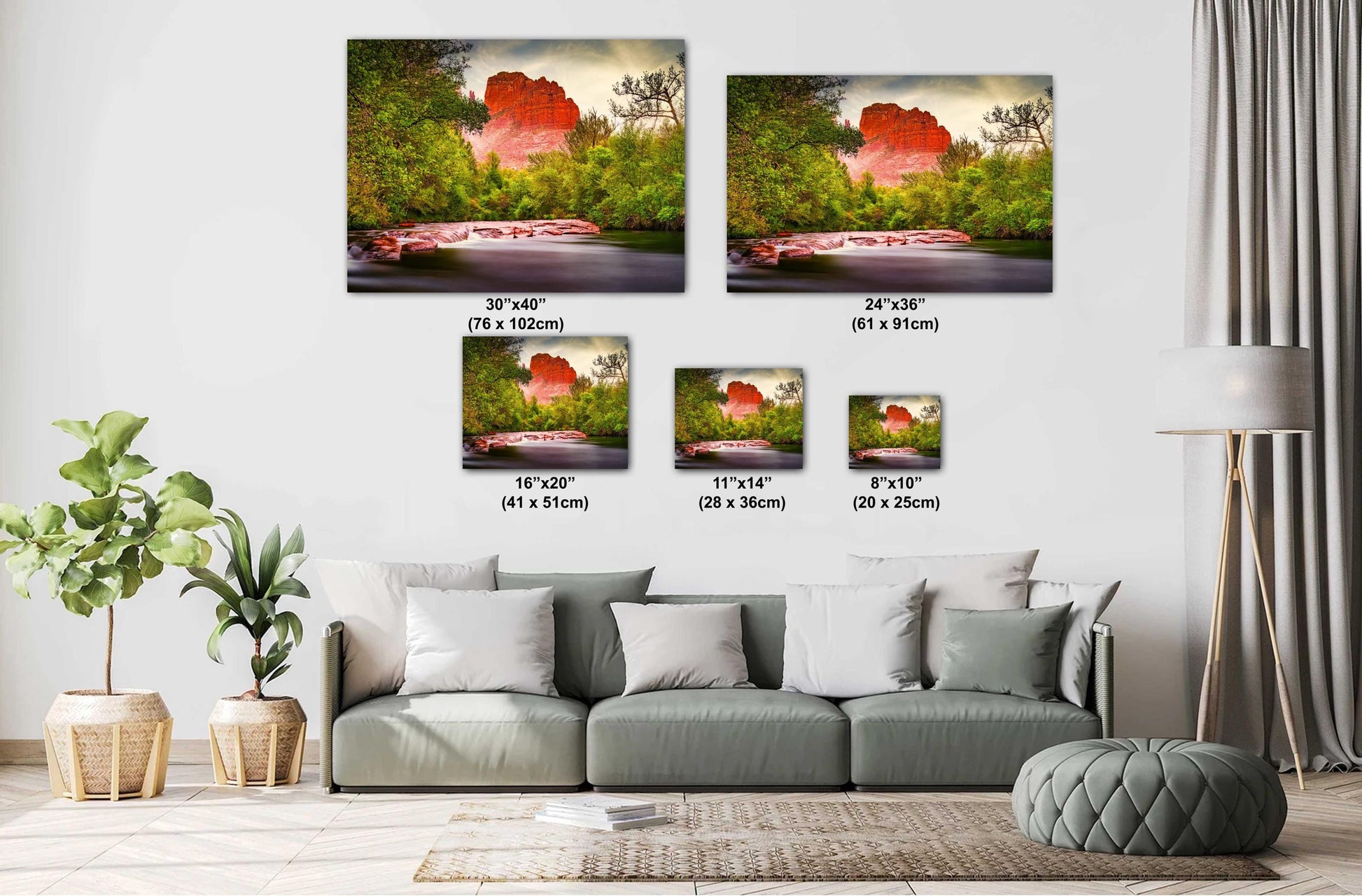 Sedona Arizona Cathedral Rock from Oak Creek - Red Rocks and Water Photography Print on Premium Photo Paper, Canvas, Acrylic & Metal Decor