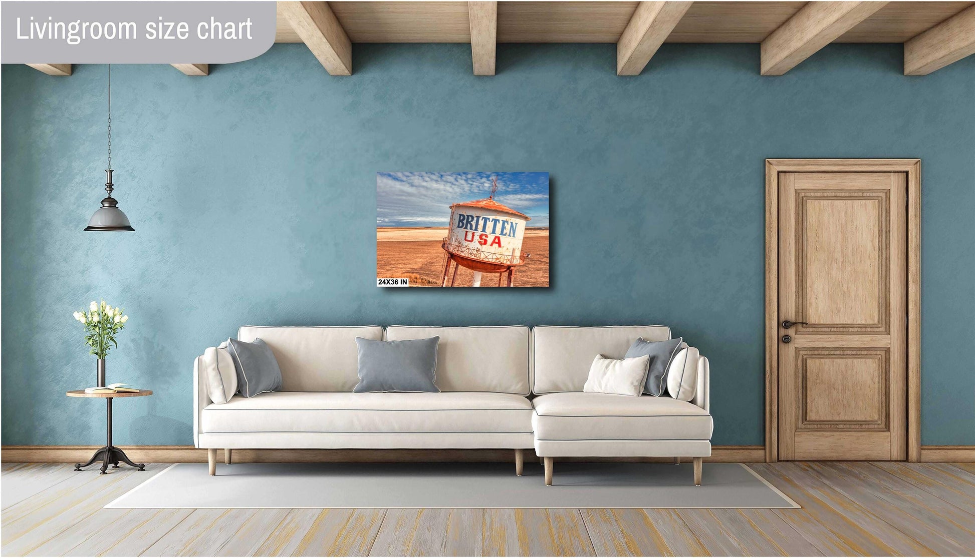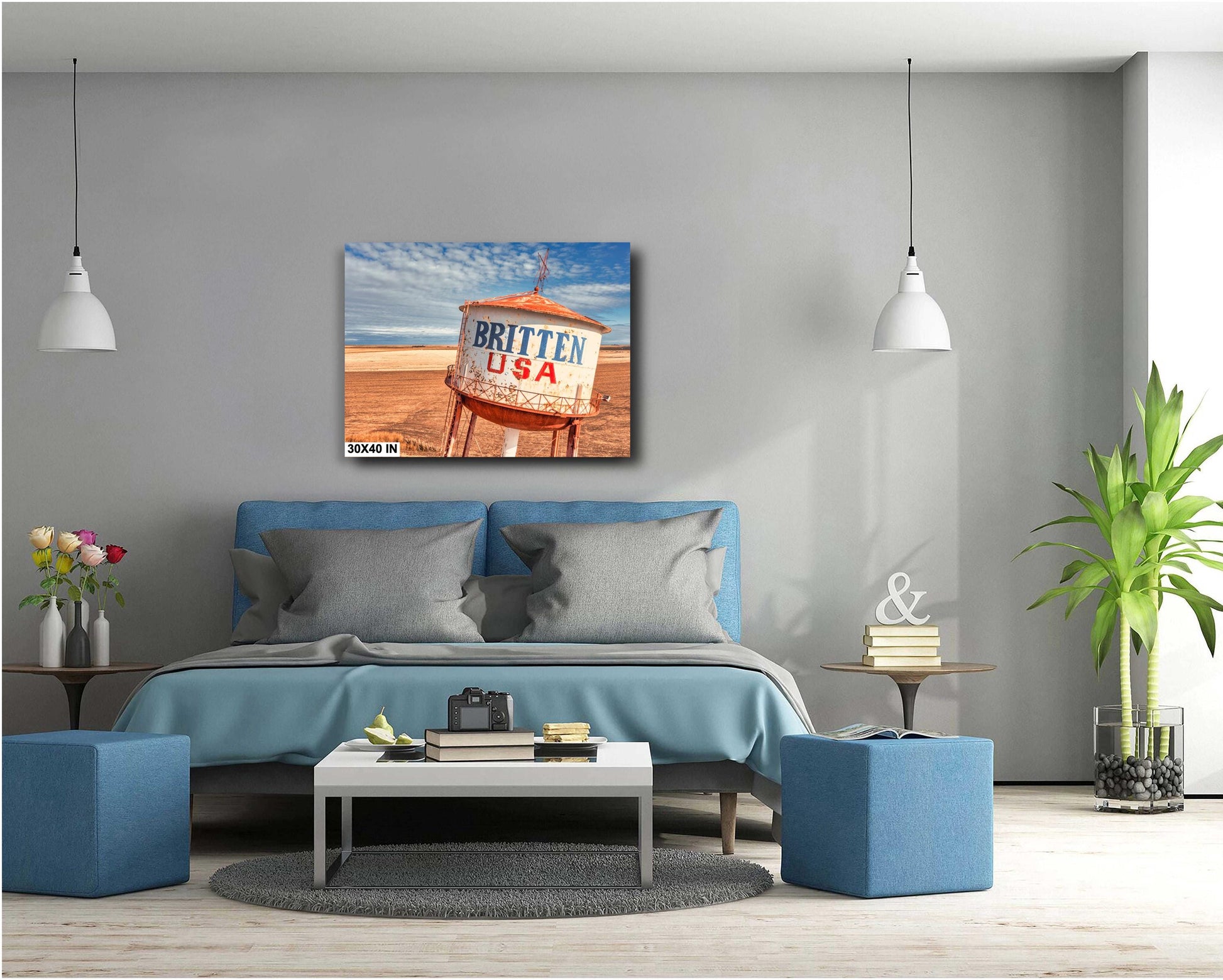 The surrounding landscape, with its vast fields and open sky, provides the perfect backdrop for this iconic structure, creating a beautiful contrast between the natural Texas plains and the rusted charm of the old water tower. This fine art print is the perfect way to bring a piece of Route 66’s colorful history into your home or office.