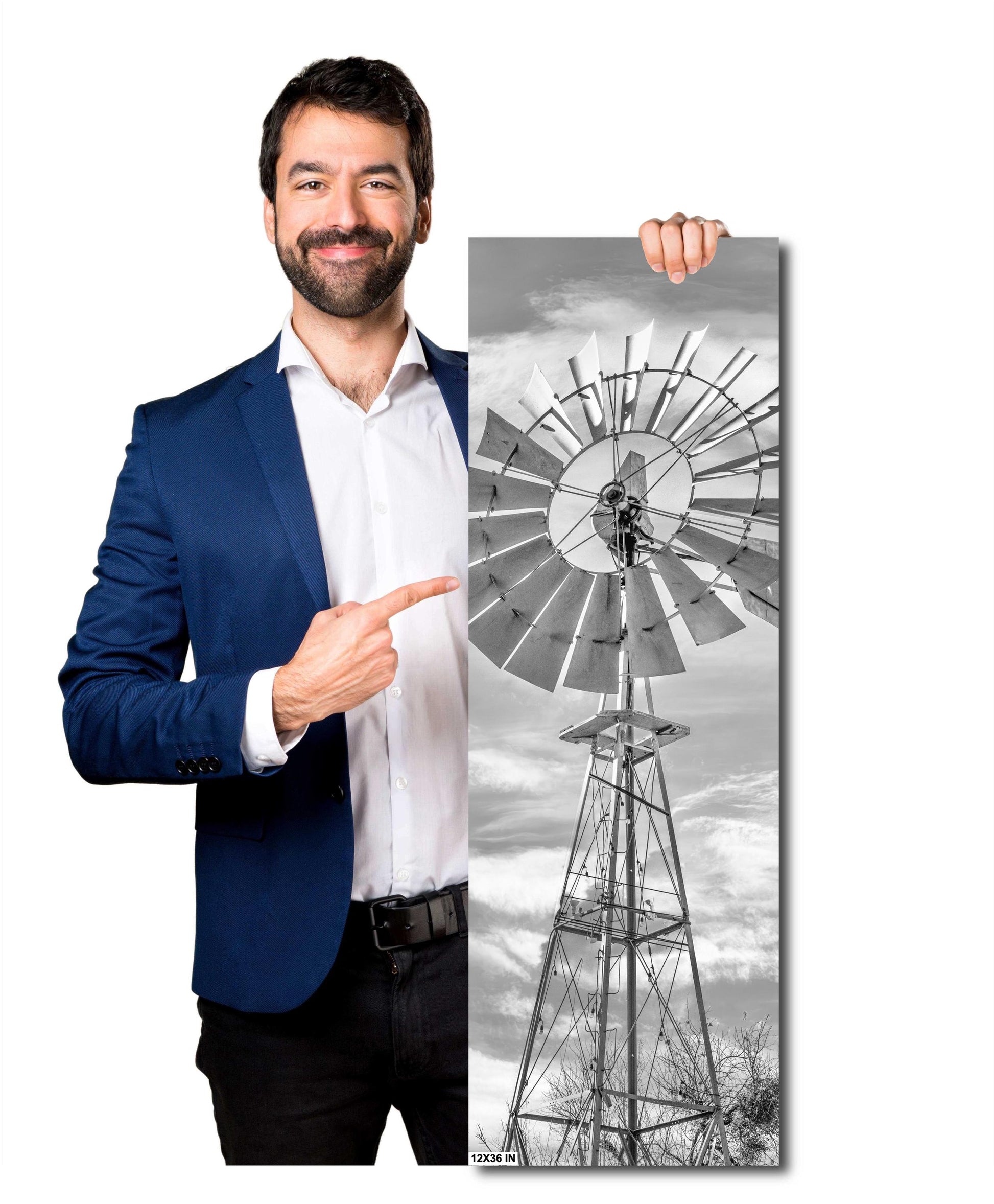 Texas Wall Art - Bandera Windmill Print - Cowboy Capitol of the World Black & White Art for Rustic Country Home Decor