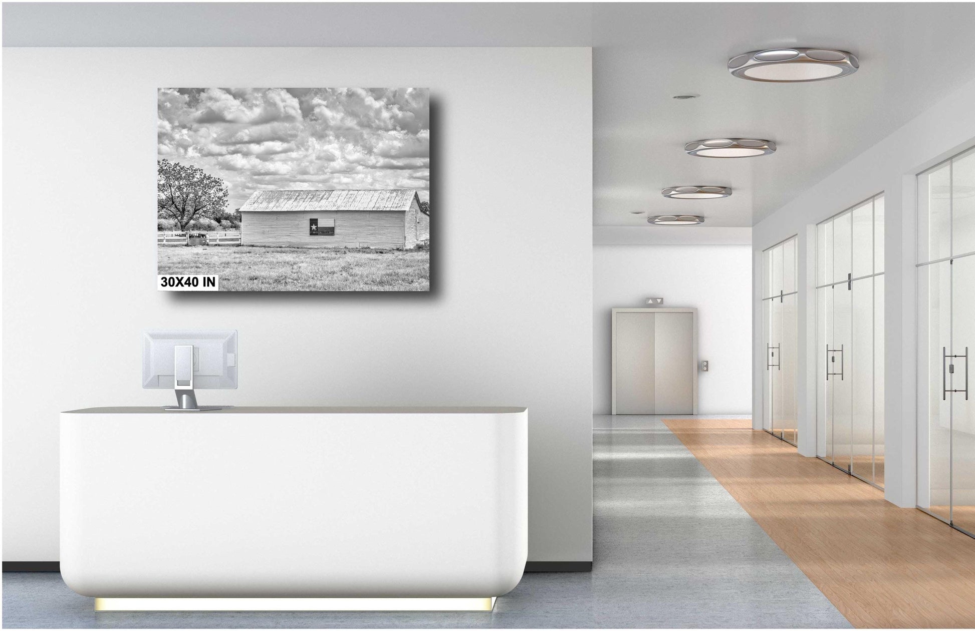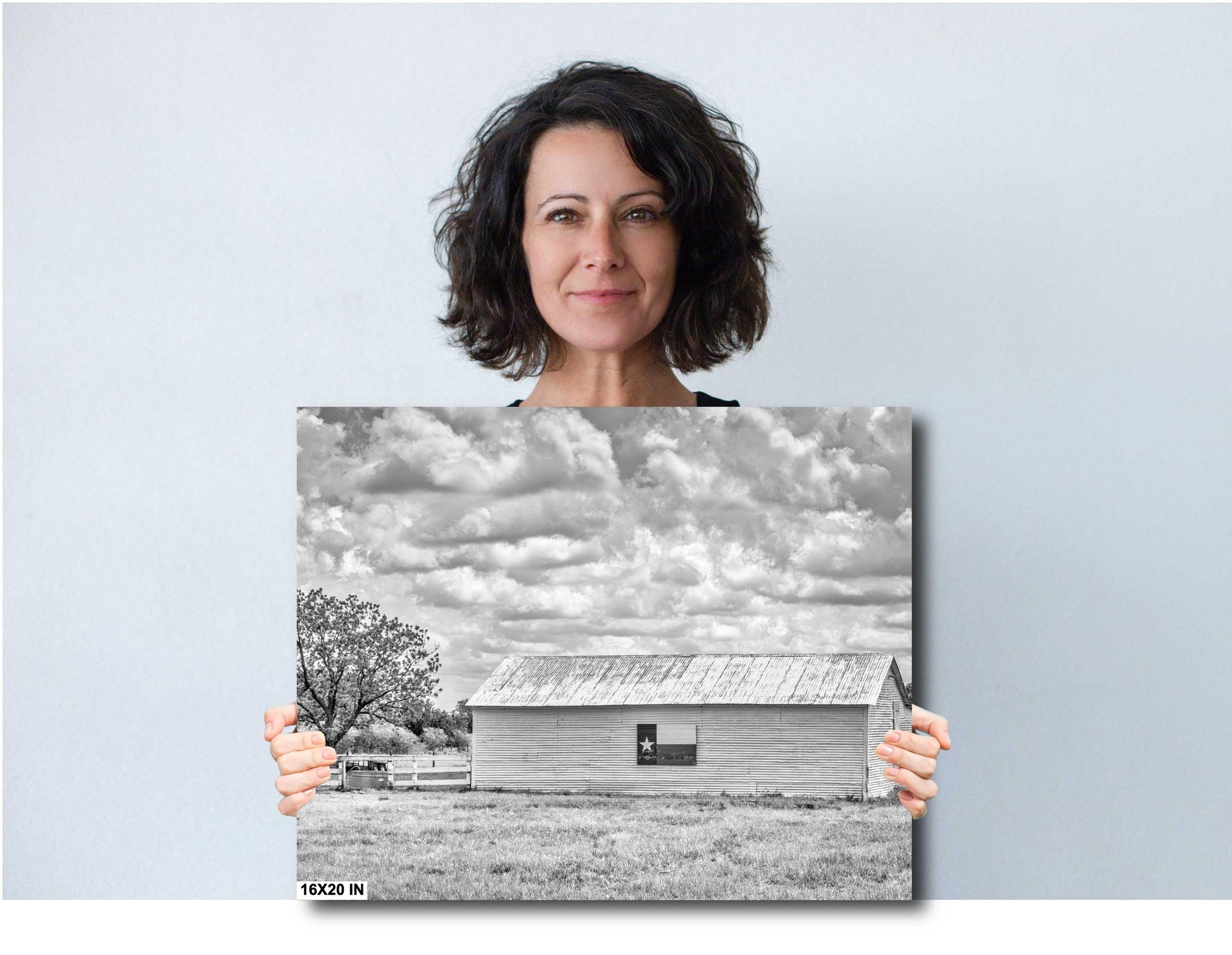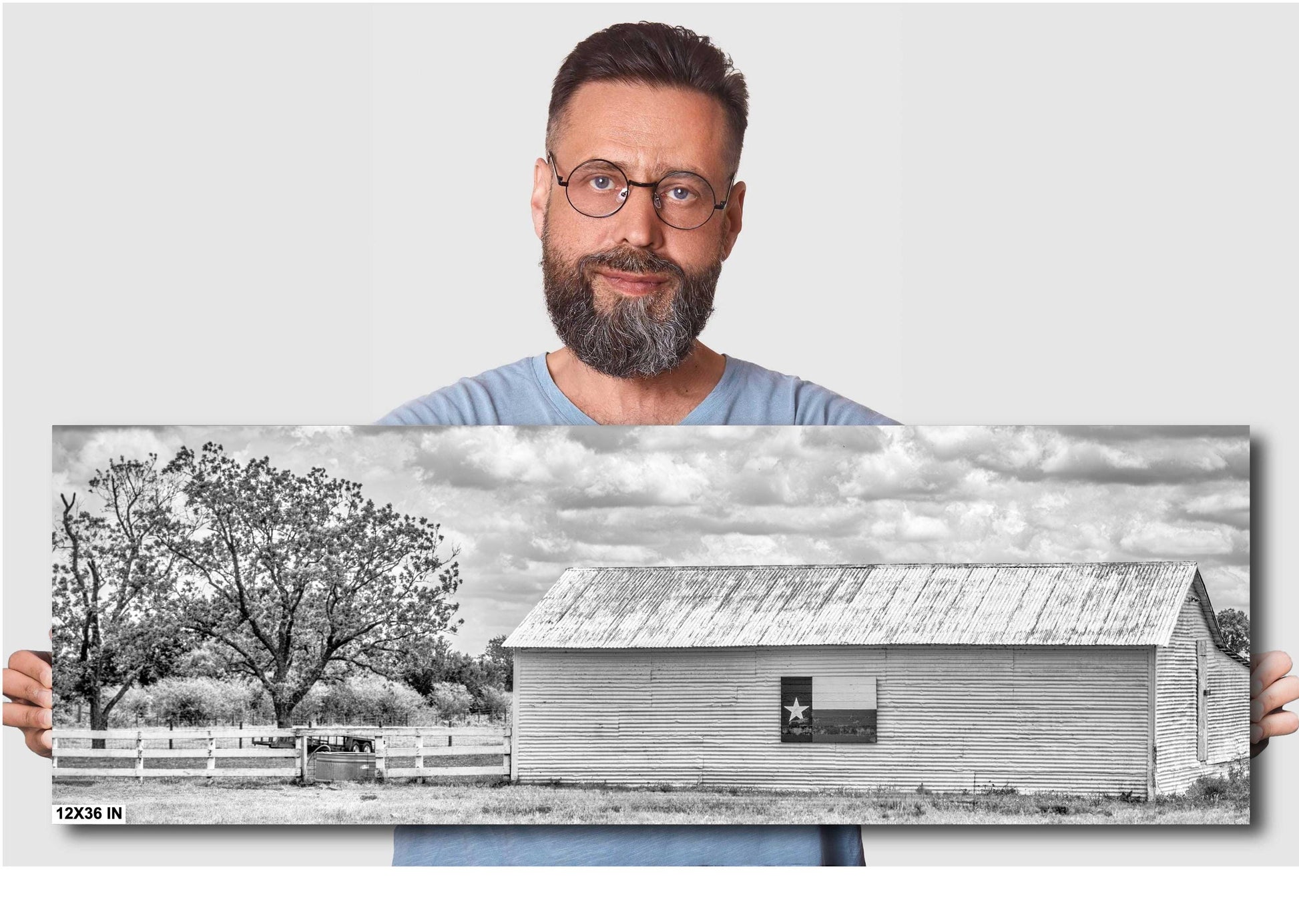 Texas Wall Art Print - Black & White Texas Flag Barn Photo: Rustic Farmhouse Wall Art for Cowboy Home Decor (Multiple Formats)
