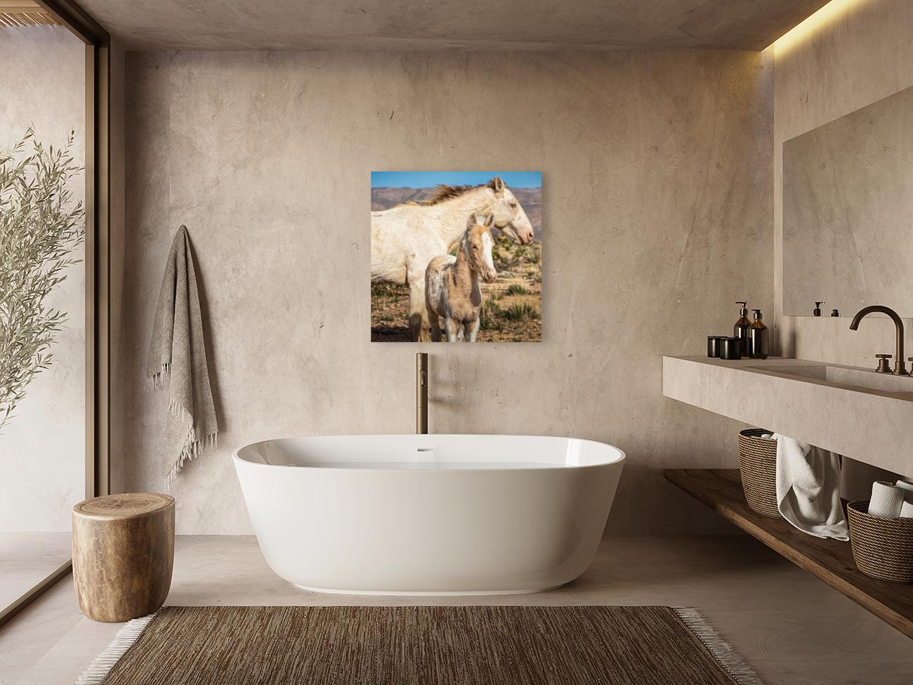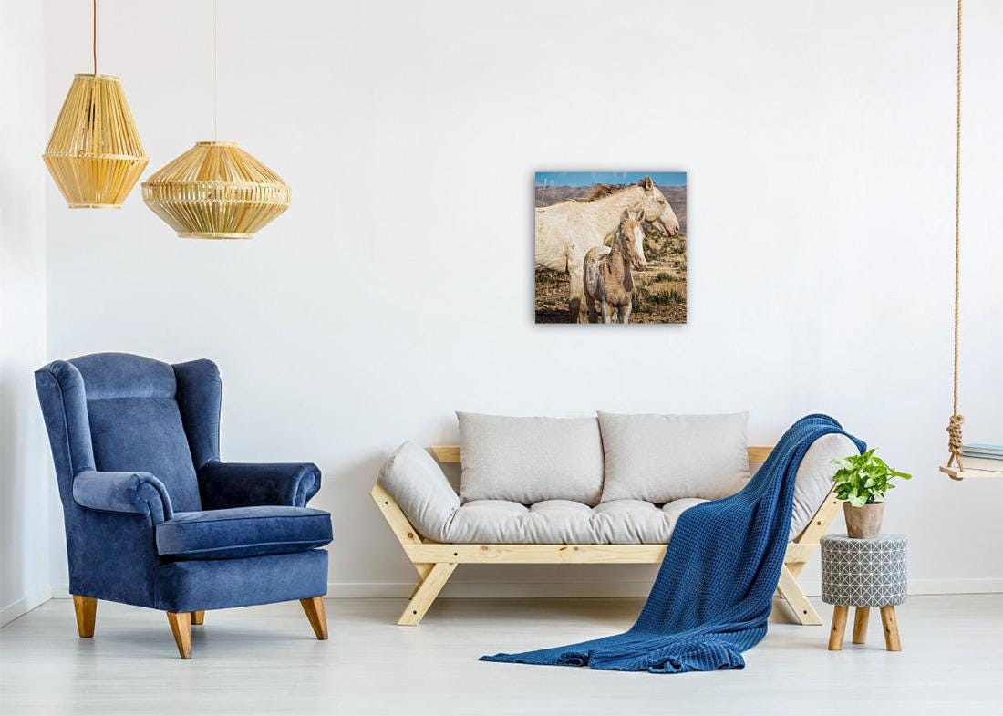 Wild Horse Photography Art Print | Wild Mare & Foal near Goodsprings, Nevada | Mojave Desert Wall Decor | Unique Horse Photo for Home